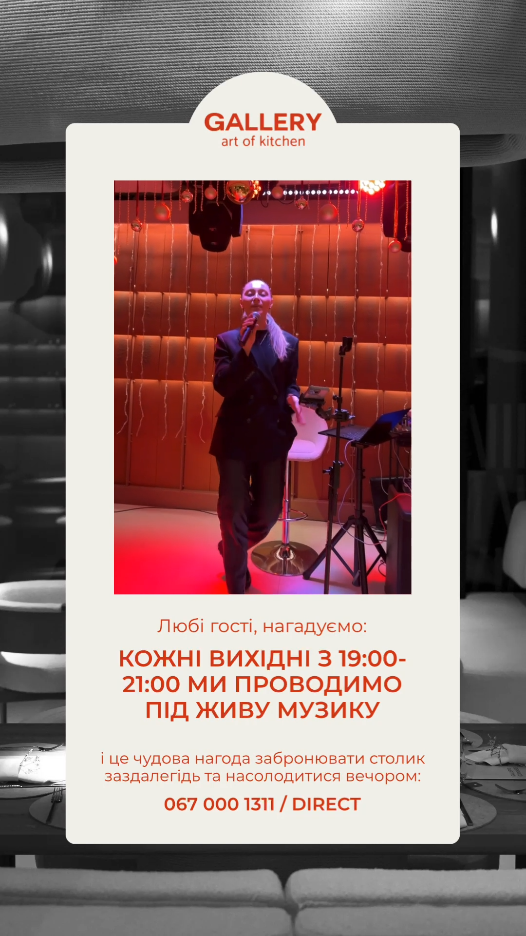 Gallery Art of Kitchen – ресторан, у якому гастрономія поєднується з естетикою та мистецтвом. Простір, де їжа – це не просто страва, а форма вираження.